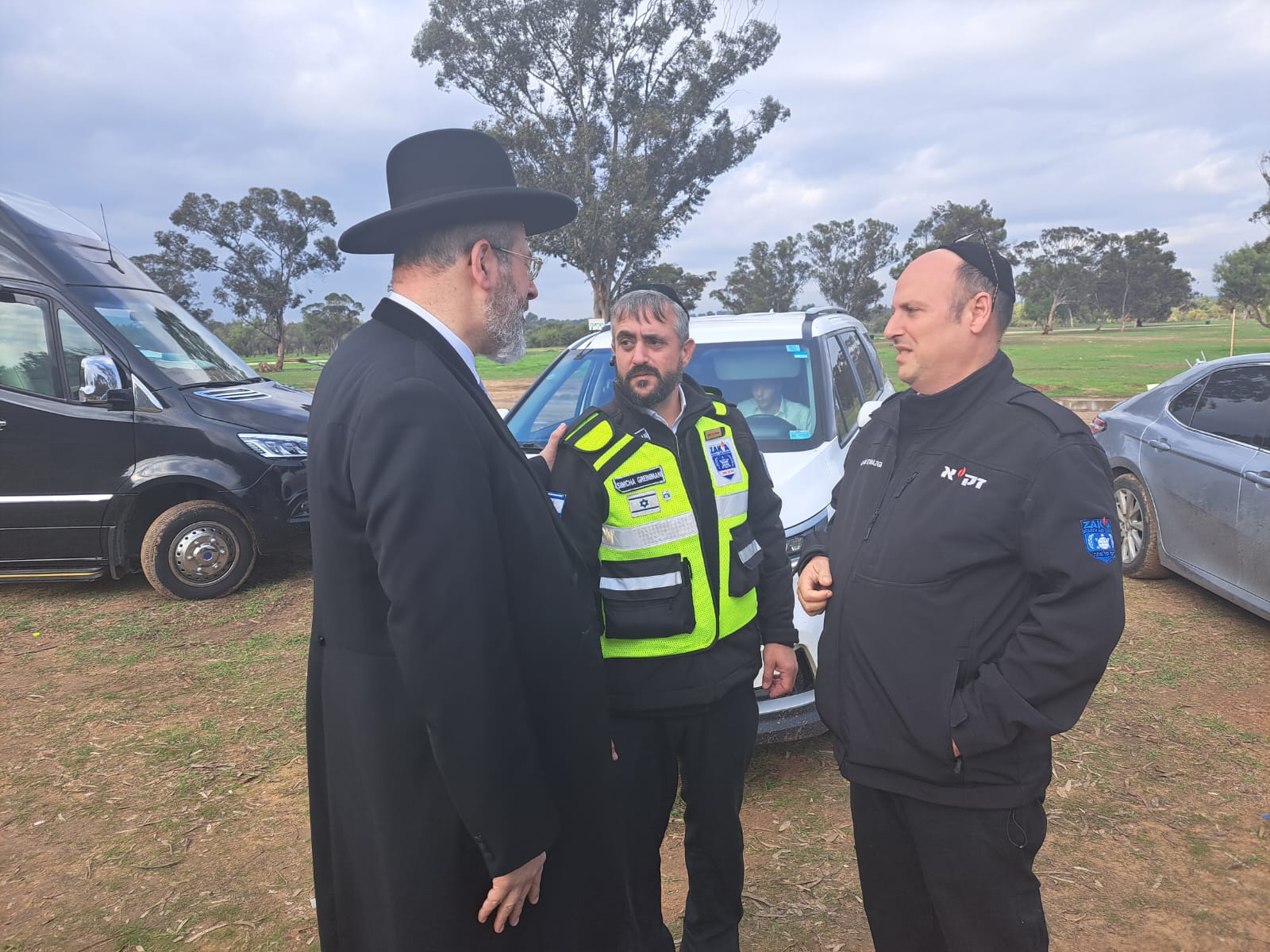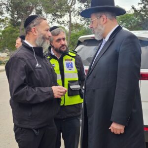 When the Chief Rabbi, the Honorable Rabbi David Lau, arrived at Gaza Village, he joined the ZAKA volunteers who have been working non-stop since Simchat Torah to remove the hundreds of victims and bring to burial the remaining evidence from the massacre scenes in the Gaza Envelope.